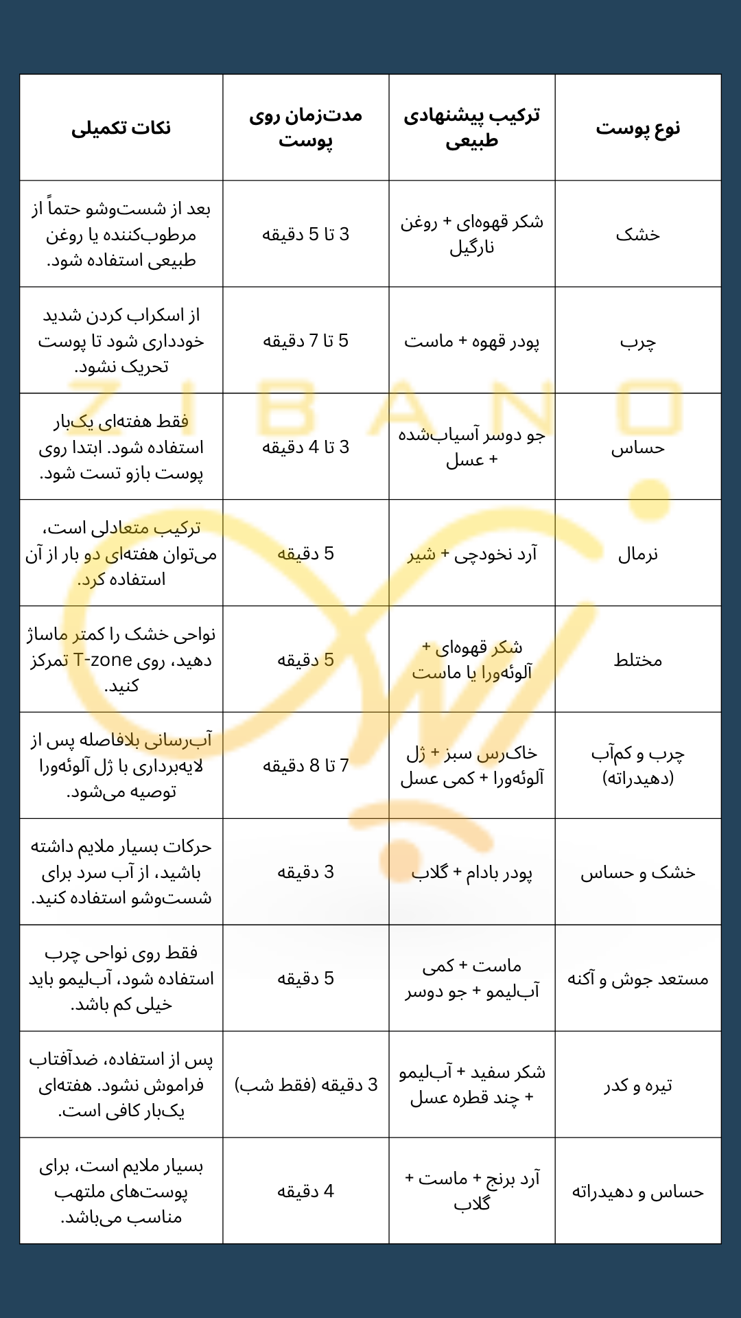 جدول لایهبرداری مناسب برای انواع پوست