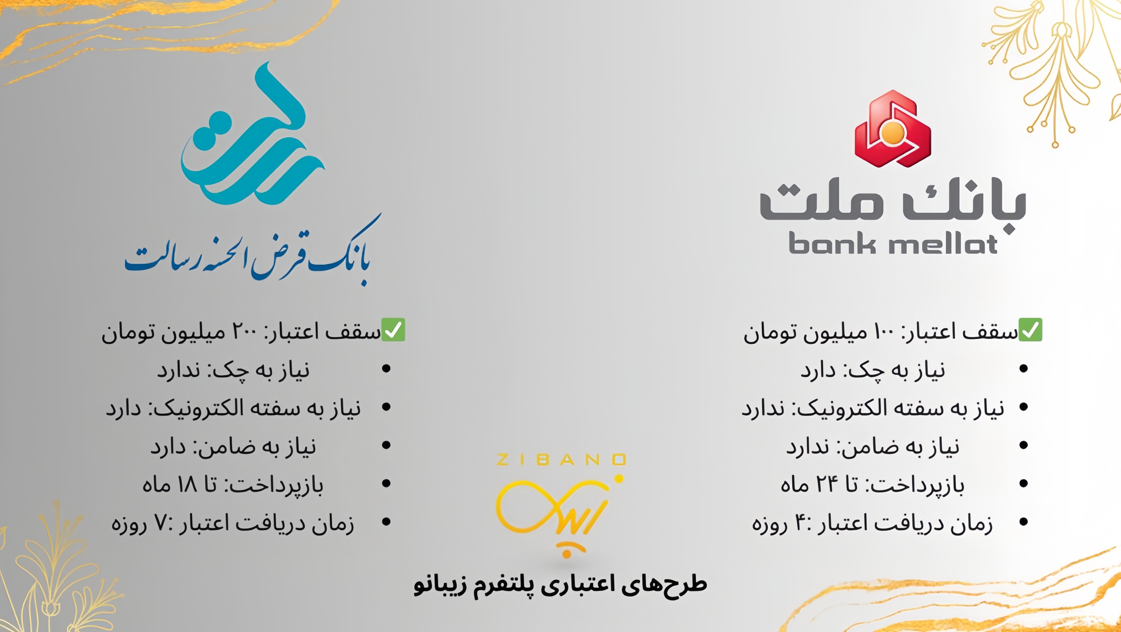 مقایسه دو طرح اعتباری زیبانو: بانک ملت و بانک قرض‌الحسنه رسالت
